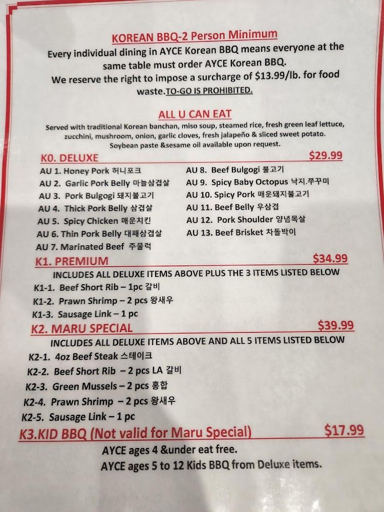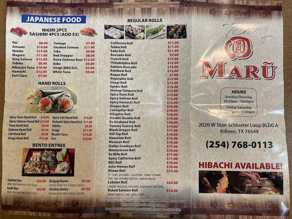 Maru Korean & Japanese Cuisine invites you to experience the vibrant flavors of Korea and Japan in a modern, casual setting in Killeen. Located at 2020 W Stan Schlueter Loop, our restaurant offers a diverse menu that features sizzling Korean BBQ, expertly crafted hibachi teppanyaki, and a wide selection of fresh sushi rolls and nigiri. Enjoy generous portions in a lively atmosphere perfect for gatherings. With options for dine-in, takeout, and contactless delivery, Maru caters to all your culinary cravings. Join us for lunch or dinner and savor authentic cuisine accompanied by theatrical hibachi performances and warm hospitality.